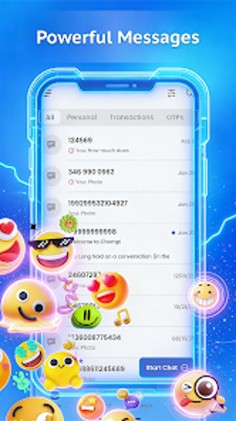 Uma das características mais notáveis do Powerful Messages é a categorização automática de mensagens, que organiza as conversas em grupos como pessoais, desconhecidos, OTP e promoções. Além disso, o aplicativo oferece um recurso de bloqueio de conversas privadas, permitindo proteger chats selecionados com senha. Isso garante maior segurança e privacidade nas interações, tornando o aplicativo uma escolha interessante para quem busca eficiência e proteção nas comunicações.